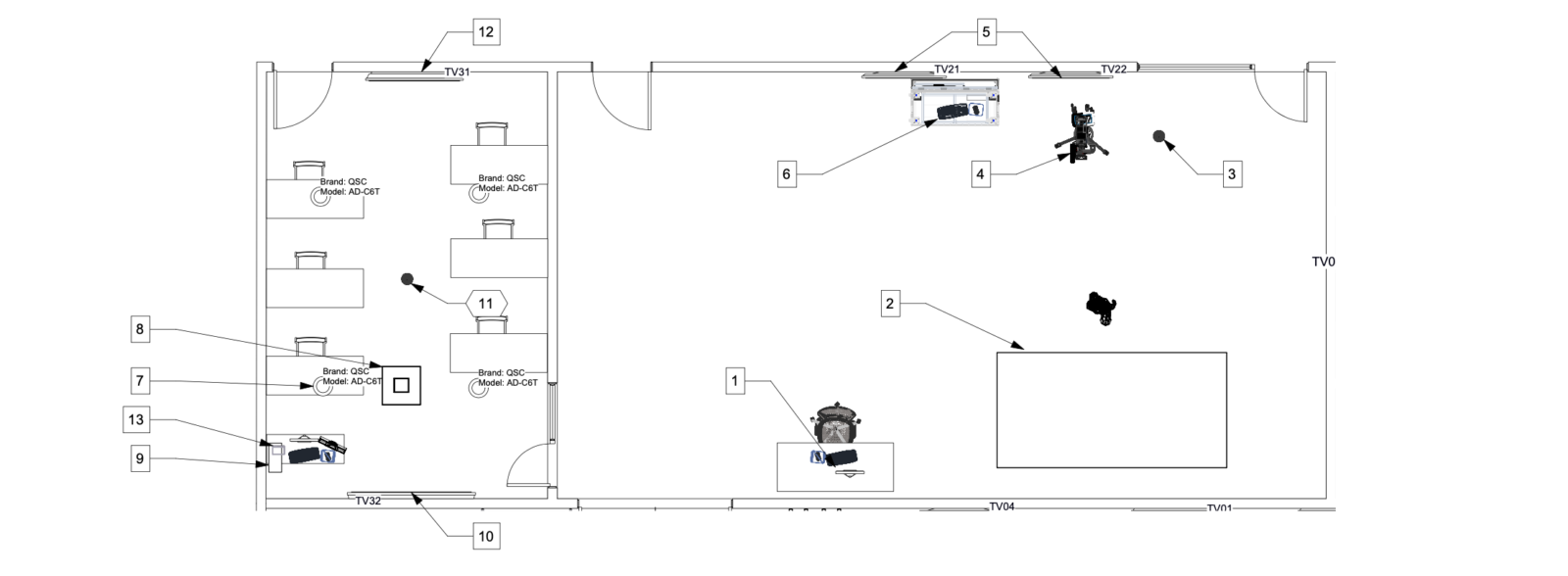 We then work alongside you and your team to fully understand your needs and what your vision truly is. We then consult with you to make sure that your vision and the technical requirements of the world of AV system design align. Upon locking in the final needs and goals, we get to drawing. We create a 2D overhead view as well as any cross-sections. Once we complete those, we can then create the 3D renders and fly throughs.